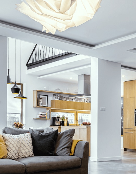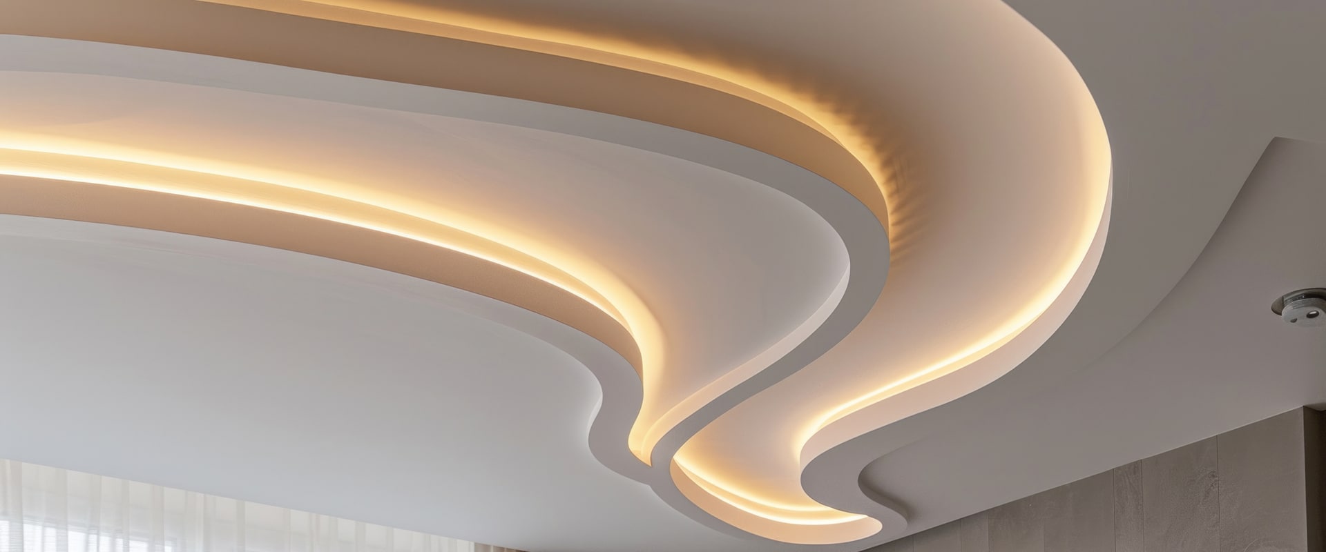 Plafonds suspendus ou en plaques de plâtre, avec des effets visuels sur mesure.